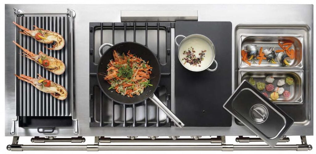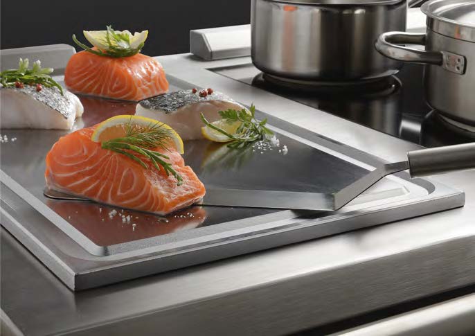 Bei den Modellen ab 110cm Breite, kann das Kochfeld mit unzähligen Optionen ergänzt werden. Die ausgeklügelten Ergänzungen ermöglichen die Zubereitung von komplizierten Gerichten, wie im Gastronomiebereich.