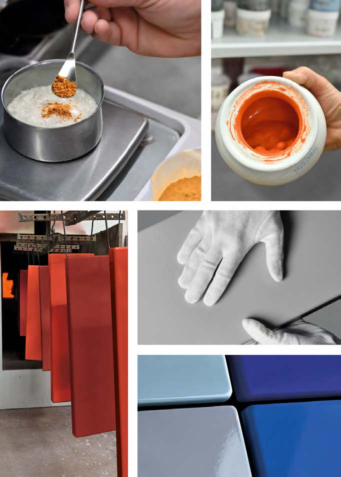 Zur Auswahl stehen 24 Farbtöne. Emaille ist ein natürliches Material, das auf die Fronten aufgetragen und bei 850 °C eingebrannt wird.