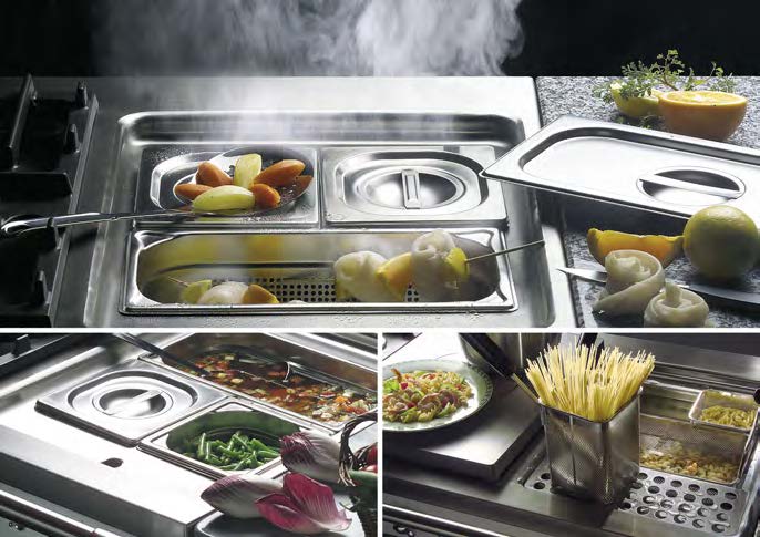 Ebenfalls kann das Bain-Marie mit den entsprechenden Accessoires ergänzt werden, sodass auch direkt in der Kochmuld gekocht werden kann, beispielsweise Pasta.